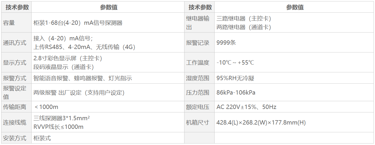 QB1100Ⅱ氣體報(bào)警控制器,可與我公司4-20mA電流輸出的氣體探測器組成工業(yè)用氣體報(bào)警控制系統(tǒng)。本系統(tǒng)采用32位高性能微處理器作為控制單元,響應(yīng)速度快。該產(chǎn)品采用柜式安裝,一臺(tái)主機(jī)包含一個(gè)主控卡,和多個(gè)通道卡,每個(gè)通道卡對應(yīng)一臺(tái)4-20mA信號(hào)輸出的探測器,多個(gè)通道可進(jìn)行組合形成多點(diǎn)監(jiān)控系統(tǒng),單個(gè)通道卡可方便進(jìn)行拆裝。同時(shí)通過標(biāo)準(zhǔn)S485或無線信號(hào)上傳至上位機(jī),從而構(gòu)成遠(yuǎn)程監(jiān)控、本地監(jiān)控、現(xiàn)場監(jiān)控的多級監(jiān)控網(wǎng)絡(luò),大大提高了監(jiān)控的實(shí)時(shí)性、準(zhǔn)確性。由該控制器和探測器組成的報(bào)警系統(tǒng)可廣泛使用于化工廠 、油庫、液化氣站、煤氣站、加油站、噴漆房等需防火、防有毒氣體泄漏的場所進(jìn)行安全檢測報(bào)警。