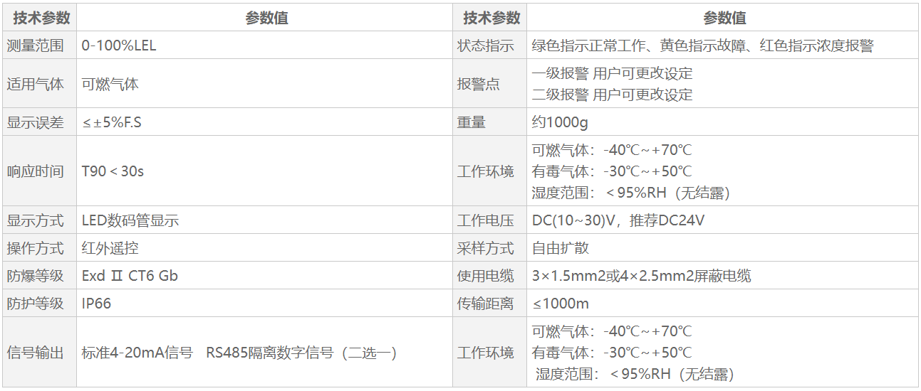 探測器為自然擴散方式檢測氣體濃度,采用進口傳感器,具有良好的靈敏度和出色的重復(fù)性;適宜工廠應(yīng)用的LED數(shù)碼顯示器實時顯示泄漏氣體的濃度值,超過預(yù)設(shè)報警點立即啟動聲光報警信號或驅(qū)動排風(fēng)系統(tǒng);國際標(biāo)準(zhǔn)(4~20)mA信號可直接接入工廠DCS系統(tǒng),RS485數(shù)字信號與工廠上位機連接;儀器采用嵌入式微控制技術(shù),操作簡單,功能齊全,可靠性高,整機性能穩(wěn)定、可靠。